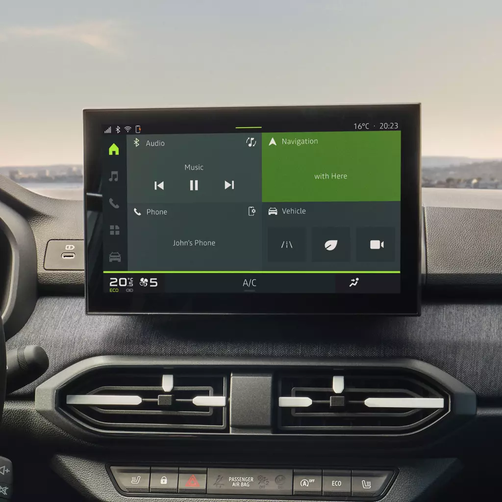 Con un precio muy competitivo, el Nuevo Sandero ofrece equipamientos y tecnología dignos de segmentos superiores. La modularidad de su interior facilita el día a día, mientras que soluciones prácticas como numerosos huecos portaobjetos, la nueva tapicería azul y el cargador inalámbrico integrado contribuyen a una experiencia de uso más cómoda. A todo ello se suma una gama de motorizaciones eficiente —incluida la opción Eco-G 120— que permite reducir consumos y emisiones sin renunciar al placer de conducción.